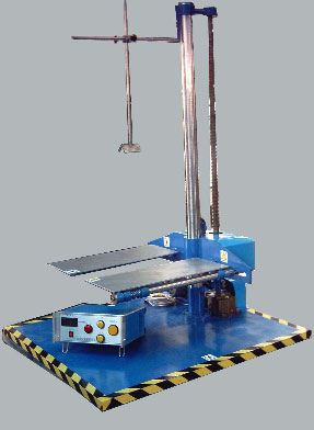 本機設計為模擬產品在包裝后模擬不同的棱\角\面于不同的高度跌落于地面時情況,從而了解產品受損情況及評估產品包裝組件在跌落時所能受的耐沖擊強度,從而改善包裝。